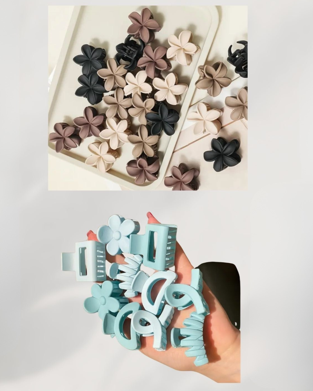 Nuestros Hair Clips son el accesorio ideal para realzar tu look de forma sencilla y elegante. Su diseño moderno y minimalista, combinado con colores neutros y pasteles, los convierte en el aliado perfecto para el uso diario. Ofrecen un agarre firme y cómodo que mantiene tu peinado en su lugar sin maltratar el cabello. Prácticos, versátiles y atemporales: un básico imprescindible.